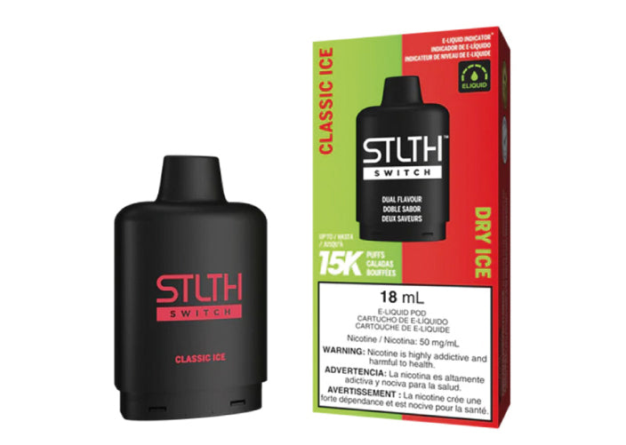 El STLTH SWITCH Pod 15K incorpora un innovador sistema dual flavor que permite alternar entre dos sabores en un mismo dispositivo. Disfruta del perfil clásico de gaseosa negra (Classic Ice) y la ligereza burbujeante de soda blanca (Dry Ice), ambos con un toque refrescante. Con hasta 15,000 puffs* y 18 ml de e-líquido, es ideal para una experiencia variada y prolongada.